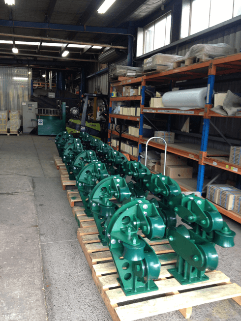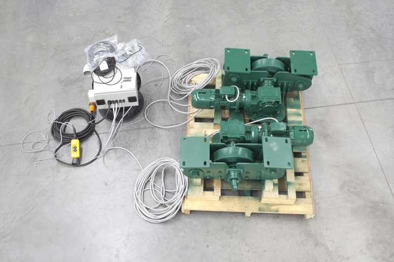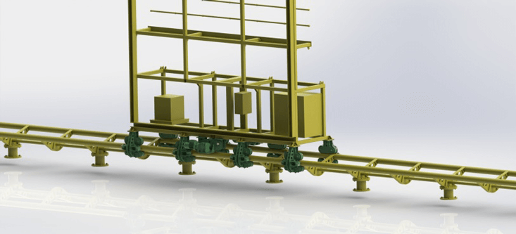 All support and traction drive system designed and built by Richmond Engineering in-house (shown in green) with fabrication (shown in yellow) completed separately. Services included design collaboration and integration of support system with existing track design, complete build and install.