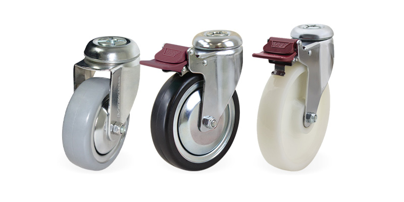 This range offers wheel diameters of 75mm, 100mm, 125mm or 150mm. The maximum load capacity castor available in this range is 100kg. These display castors are available with a swivel, rigid, swivel with brake or swivel with directional lock frame.