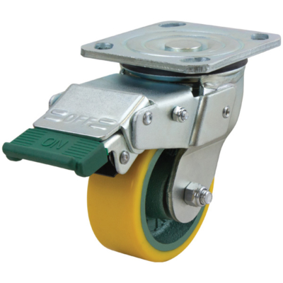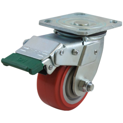 They are available in wheel diameters of 100mm, 125mm, 150mm or 200mm. These heavy duty castors are available in swivel, rigid, swivel with brake, swivel with directional lock, swivel with side brake or swivel with swivel lock and brake combinations. Depending on the wheel type, bearing types include ball bearing, bronze bush, oilless DU bush, plain bore, roller bearing or stainless steel roller bearing.
