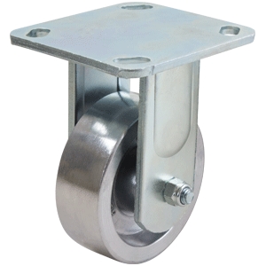 A rigid castor such as this one is generally used for straight line travel however when used with swivel castors, the load can be steered.