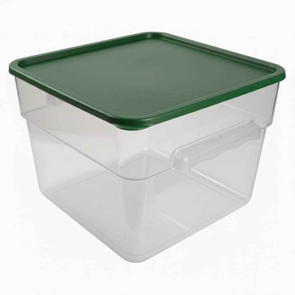 Durable 11.4L clear polycarbonate food storage container for safe, stackable storage and food preparation in commercial kitchens, catering, and hospitality environments.