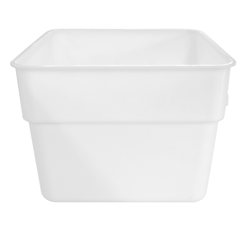 Durable 11.4L white polyethylene food storage container for safe, stackable storage and food preparation in commercial kitchens, catering, and hospitality environments.