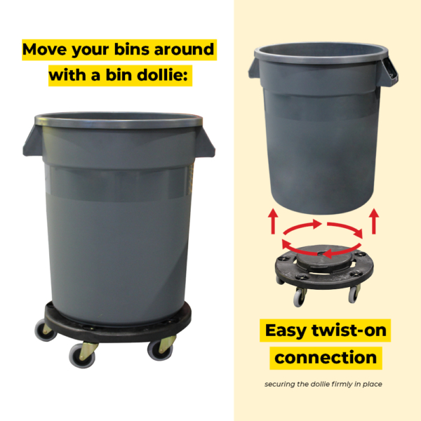 Optional tight-fitting lids help protect contents and allow secure stacking, while twist-on, twist-off dollies are available to improve mobility for transport or warehouse handling. UV stabilisation ensures long service life both indoors and outdoors, making this bin a practical choice for industries ranging from food production to manufacturing and logistics.