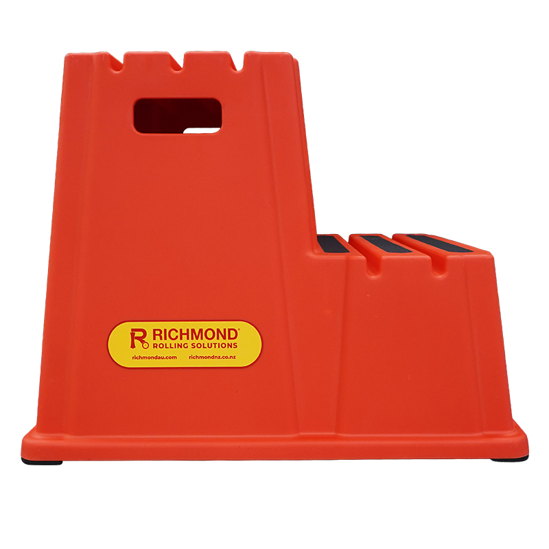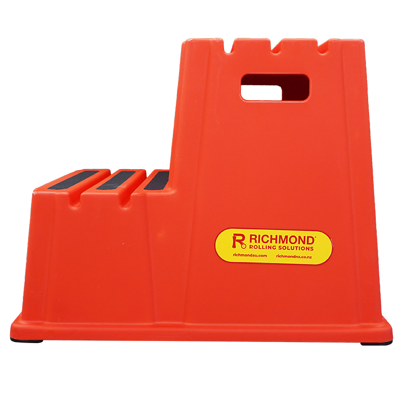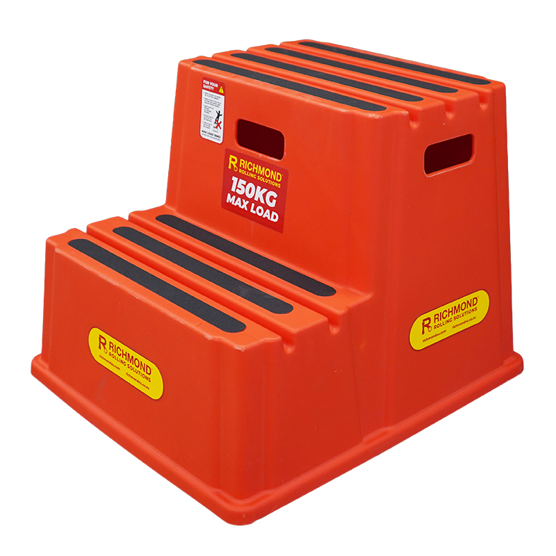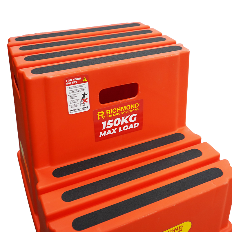 The SSR009 Safety Step is a compact, two step access solution designed to help staff reach higher shelving, storage locations and equipment safely. Finished in a bright, high visibility orange, it features grip tape across each tread to provide reliable traction, and rubber feet at all four corners to help keep the unit firmly in place during use. Integrated side carry handles make it simple to lift and move, so operators can quickly position the stair wherever access is needed.