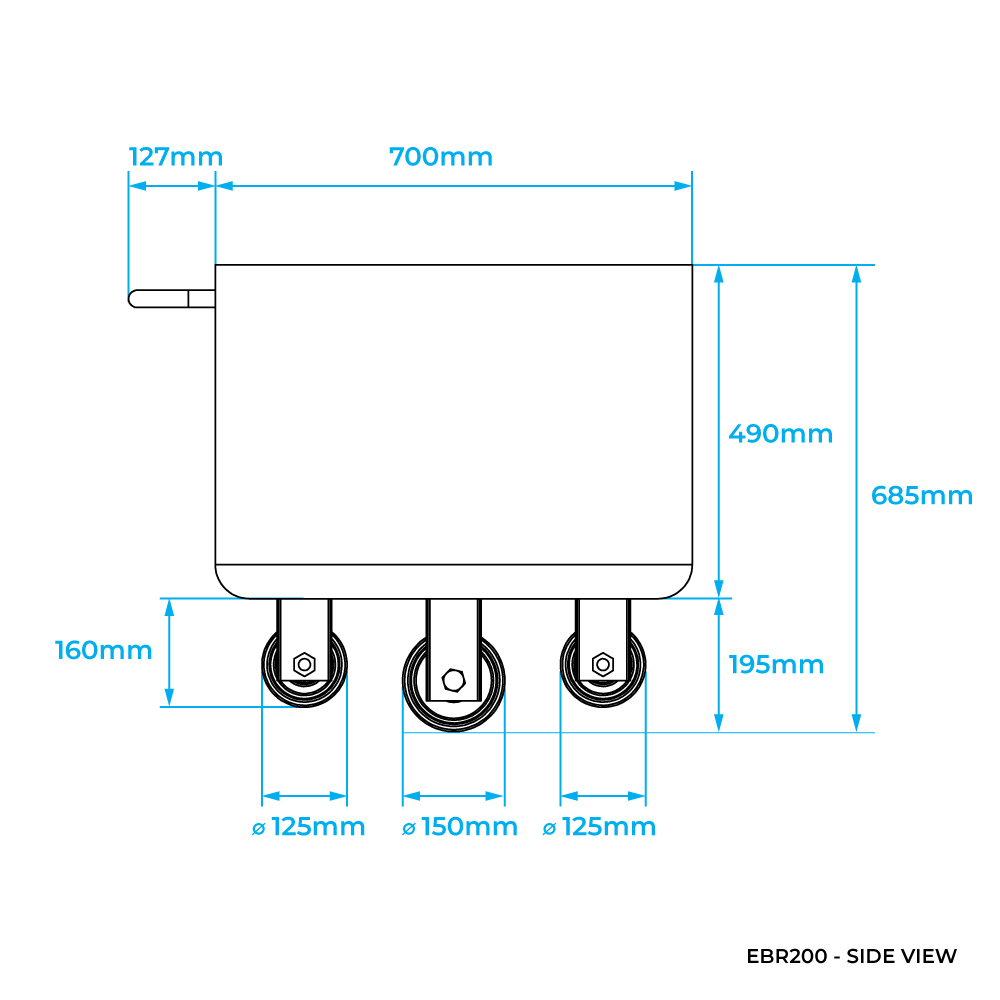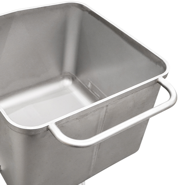 Manufactured from 304 stainless steel, the bin provides excellent corrosion resistance and strength for wet or high-use areas. Smooth welded construction supports straightforward cleaning, while the reinforced base delivers long-term durability in demanding conditions. For mobility, the bin is fitted with heavy-duty nylon castors featuring 150mm outer wheels and 125mm inner wheels, providing stable movement and controlled handling across processing and factory floors.