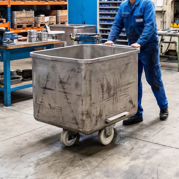 • Designed for Food Manufacturing & Industrial Handling: Commonly used as a dump bin, tote bin, stainless steel trolley bin, or meat bin for transporting ingredients, offcuts, waste, or bulk materials.
