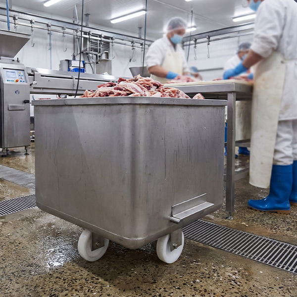 Yes. Stainless steel euro bins are commonly used in meat processing facilities and abattoirs for handling trim, offcuts, and general product transport. The smooth stainless steel construction allows for easy washdown and cleaning, helping remove residue efficiently between uses.