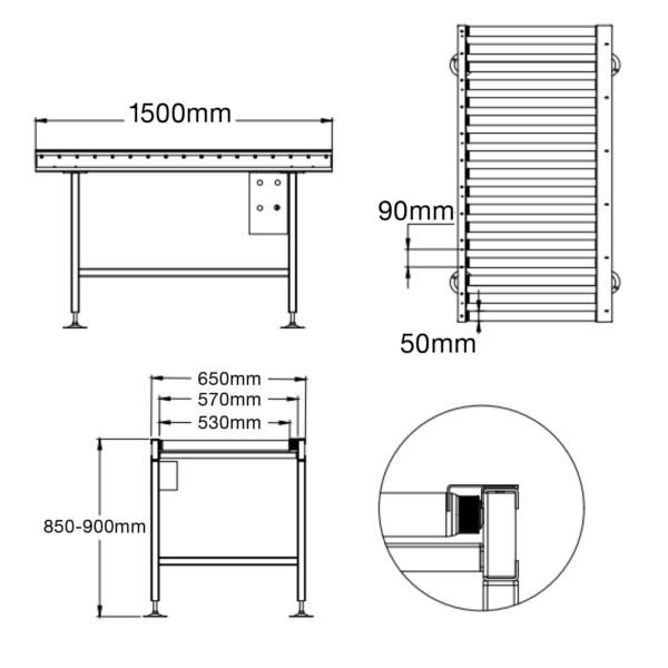 • Stainless steel rollers: Ø50 x 600mm 201 stainless steel rollers provide smooth, corrosion-resistant handling.