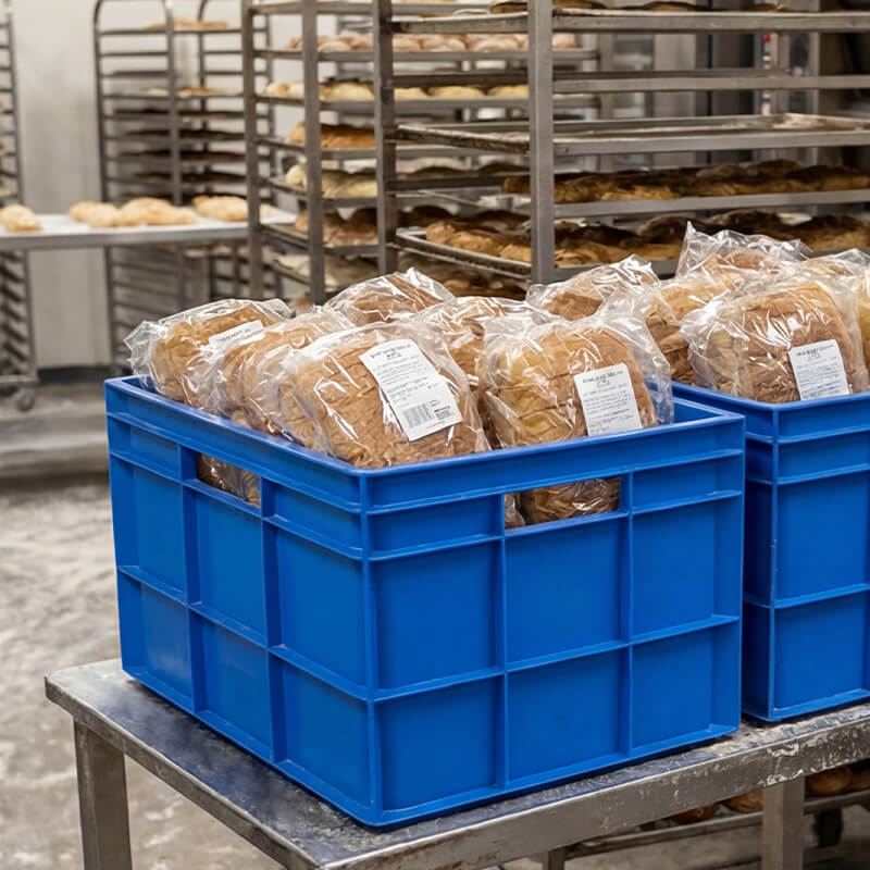 - Stackable Design: Designed to stack securely when full, maximising vertical storage space in warehouses and cool rooms