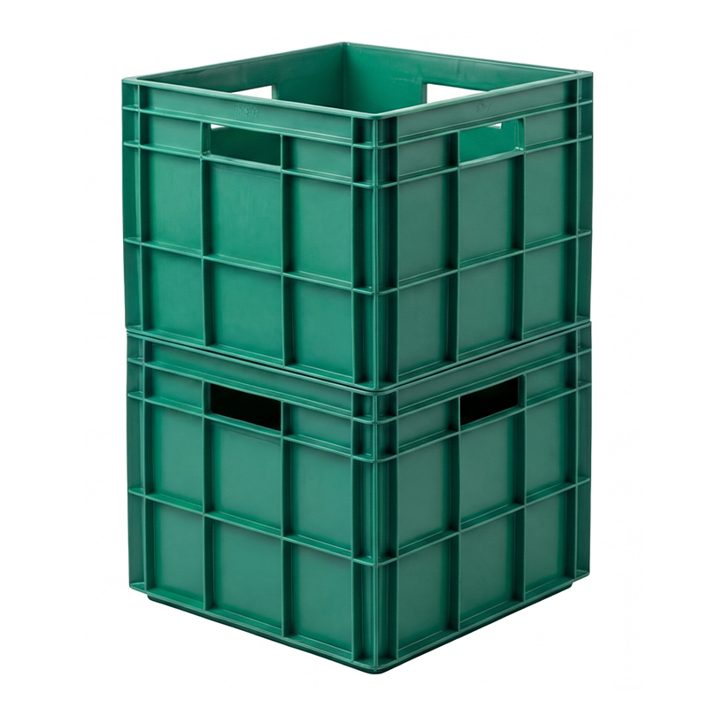 • Stackable Design: Designed to stack securely when full, maximising vertical storage space in warehouses and cool rooms