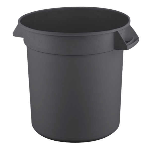 The crush-resistant construction, reinforced rims, and double-ribbed base provide stability and durability in demanding environments, while the smooth, round interior makes cleaning easy and helps reduce residue build-up. Its neutral grey colour supports general-purpose storage, workplace organisation, or colour-coded systems in food handling and hygiene programs.