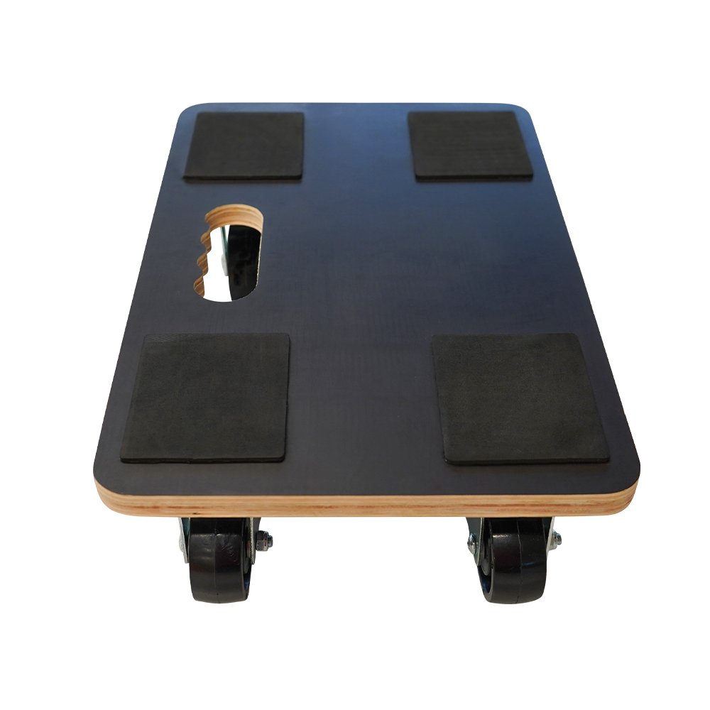 Black timber deck dollie with rubber pads for moving heavy, bulky and awkward loads up to 150kg in the home or office – such as furniture, heavy boxes, and other hard to carry objects.