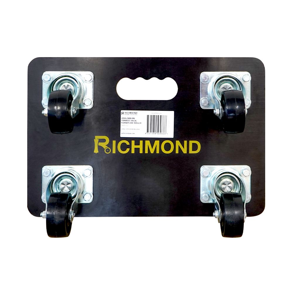 The SKR112 is a compact, heavy-duty furniture dollie designed to assist with moving bulky items like boxes, cabinets, or small furniture pieces. It features a 450mm x 300mm timber deck with a strong load-bearing capacity, supported by four swivel castors for smooth movement across hard flooring.