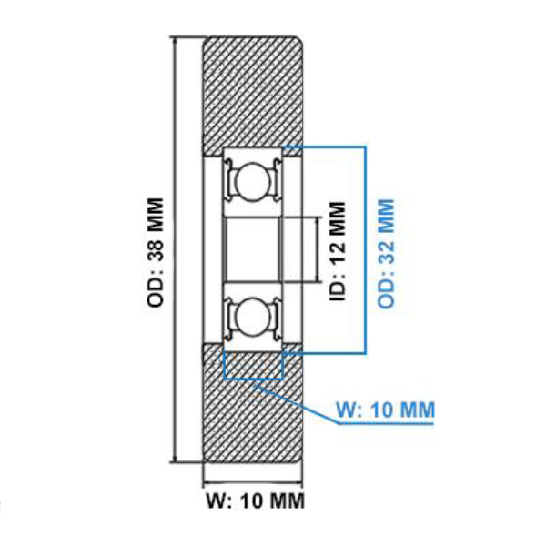 - Bearing Width: 10mm overall bearing width including polyurethane coating.