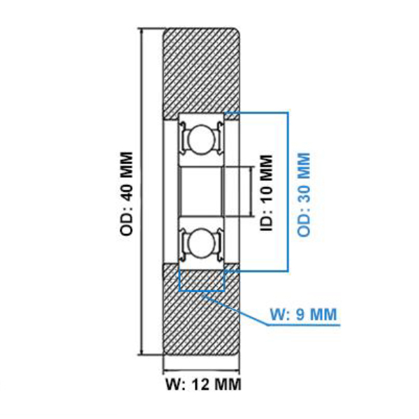 - Bearing Width: 12mm overall bearing width including polyurethane coating.