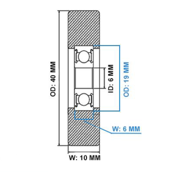 Polyurethane Coated Bearing, 40mm OD × 6mm ID × 10mm Wide (PUBB4006-10)