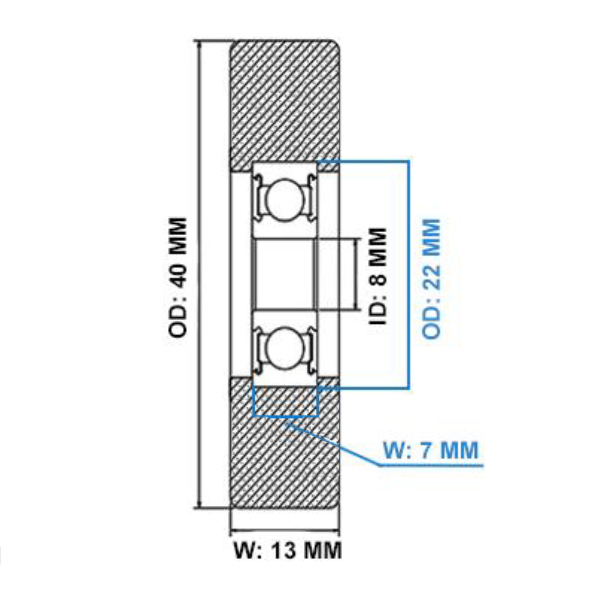 - Bearing Width: 13mm overall bearing width including polyurethane coating.