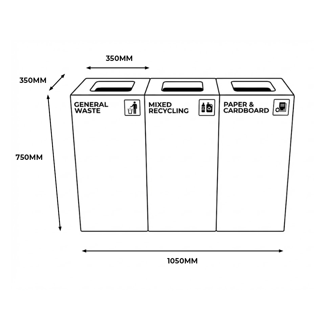 This three-bin station is ideal for shared indoor spaces including office buildings, schools, retail centres and hospitality venues. Lightweight yet sturdy, it offers a professional appearance and supports improved waste management practices onsite.