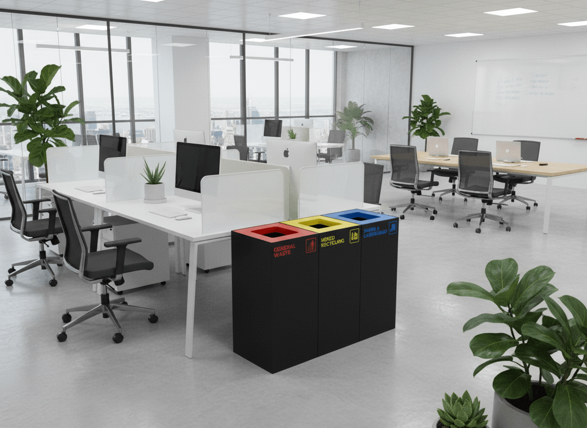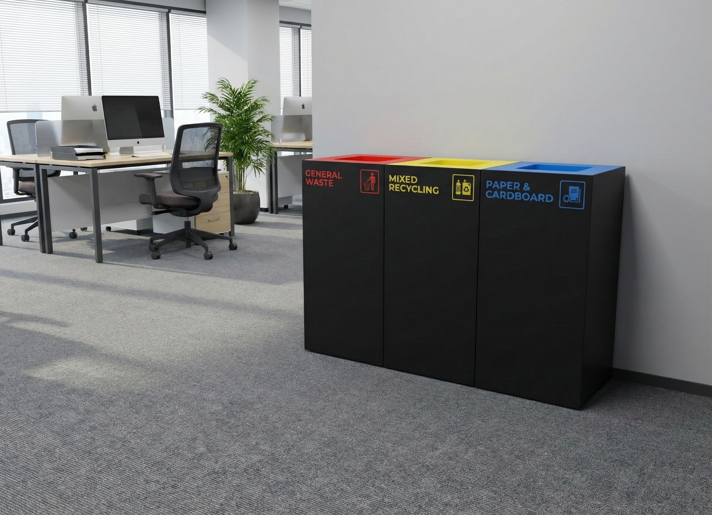 Absolutely. It’s suitable for offices, schools, shopping centres, entertainment venues, and other indoor commercial spaces. Removable lids and inserts make each bin simple to empty and clean for facility staff.