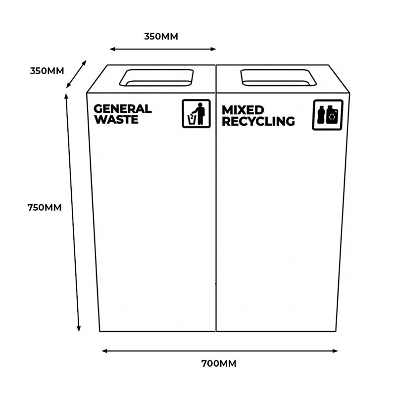 This dual-bin station is ideal for shared indoor spaces including office buildings, schools, retail centres and hospitality venues. Lightweight yet sturdy, it offers a professional appearance and supports better waste management practices on site.
