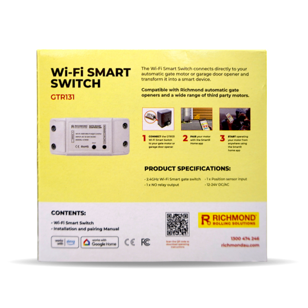 Easily convert your gate motor or garage door opener into a smart WiFi opener! Compatible with Richmond automatic gate openers and a wide range of third party motors.